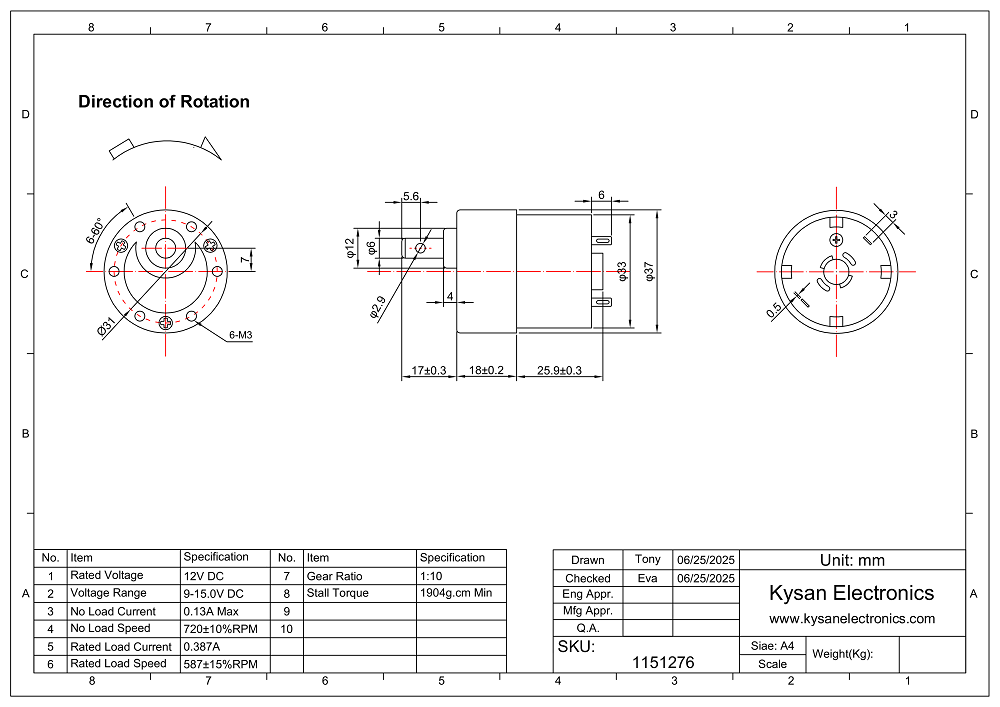 Decsription: B38-12V720RPM-10-4