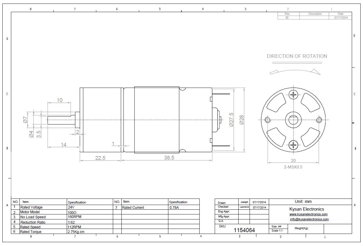 Decsription: A28RO-24V160RPM