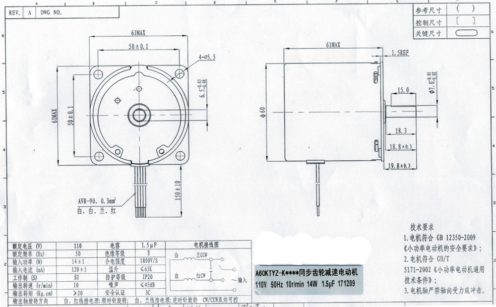 Decsription: 60KTYZ-110V10RPM-C