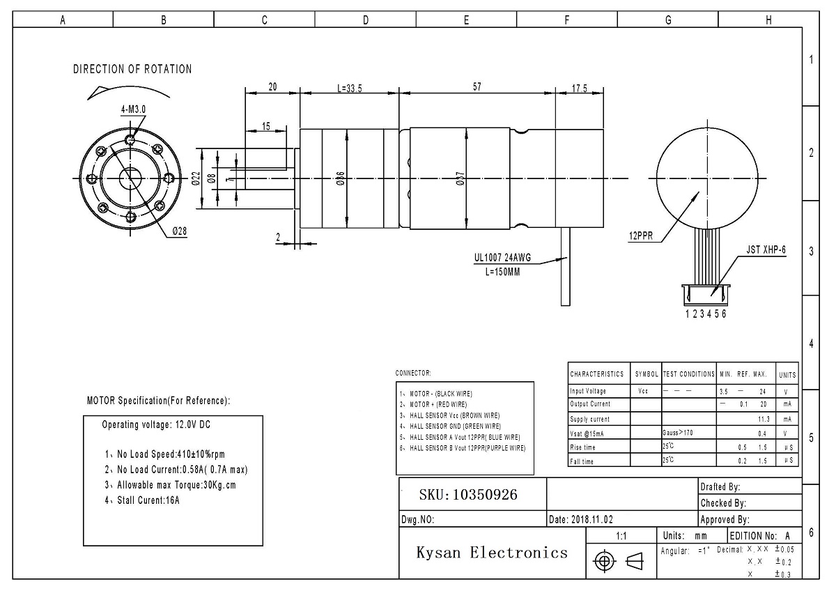 Decsription: AX36-12V400RPM-E2C12P