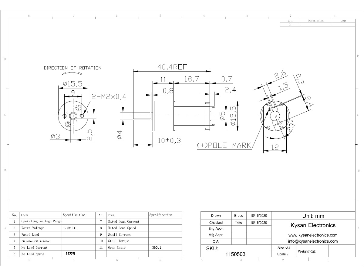 Decsription: 16GA030-6V66RPM