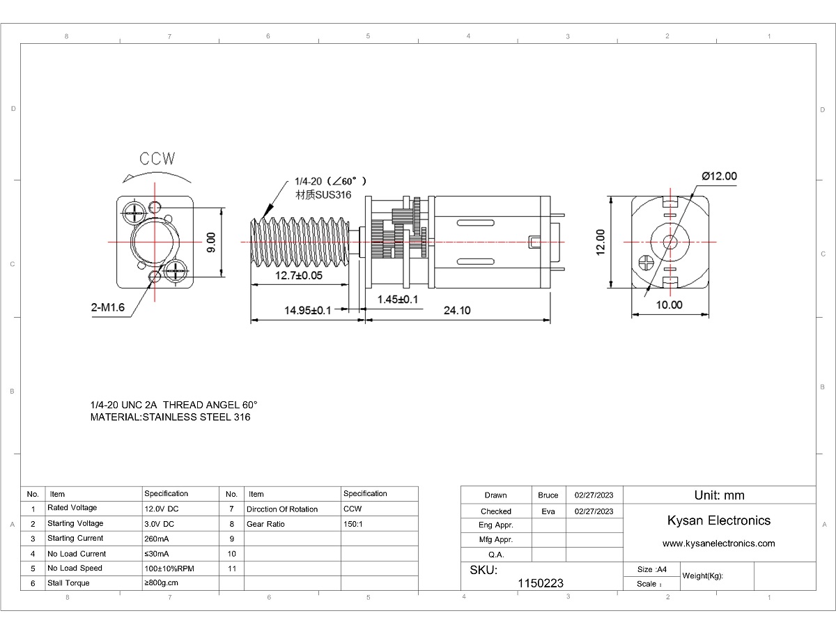 Decsription: A12FT-12V100RPM-150