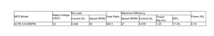 Decsription: A17R-12V35RPM