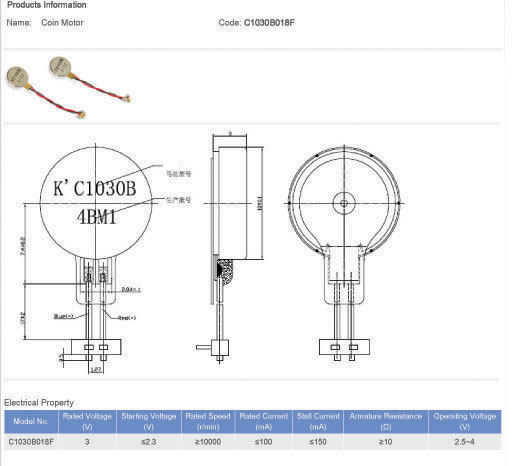 MOTOR,VIBRATING,10MM,3VDC,10000RPM,100 mA