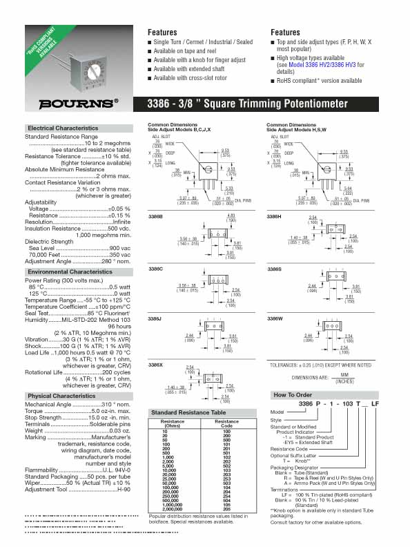 Applications: Trimming potentiometers perform a variety of circuit adjustments in all types of electronic equipmen