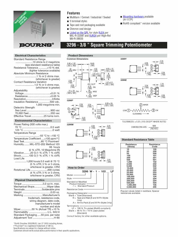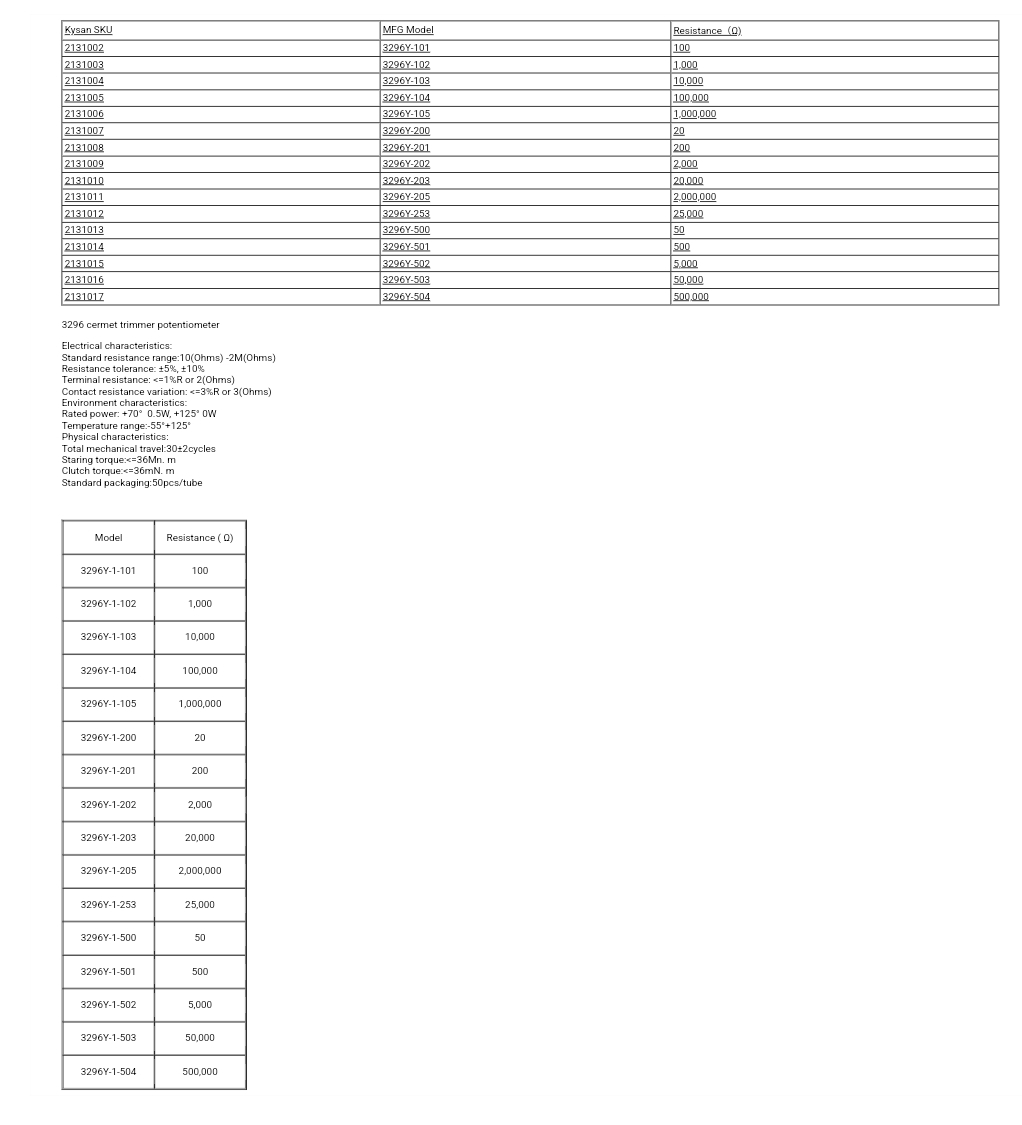 Applications: Trimming potentiometers perform a variety of circuit adjustments in all types of electronic equipmen