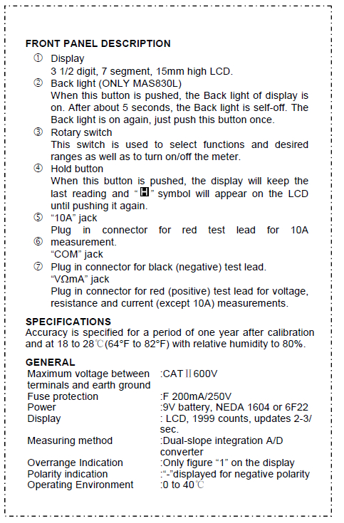 Decsription: MAS830L