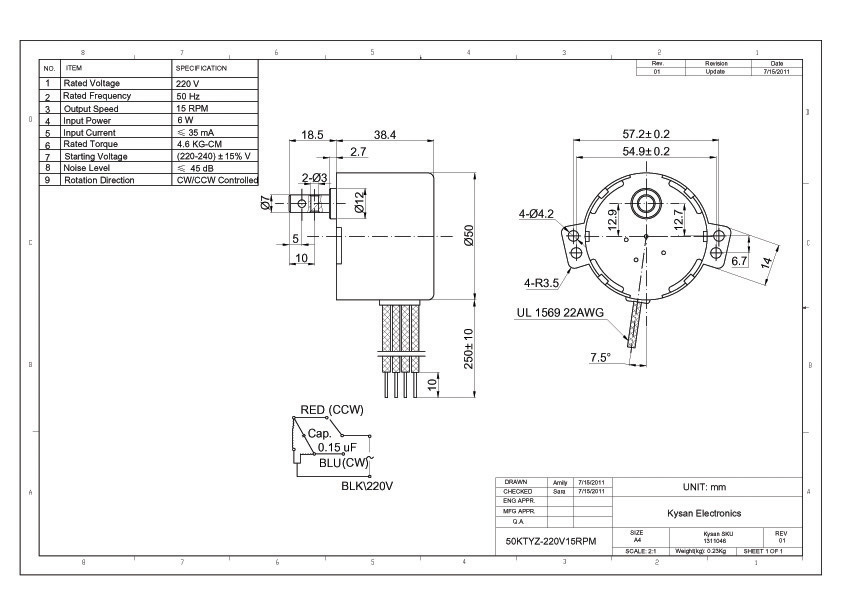 Decsription: 50KTYZ-220V15RPM