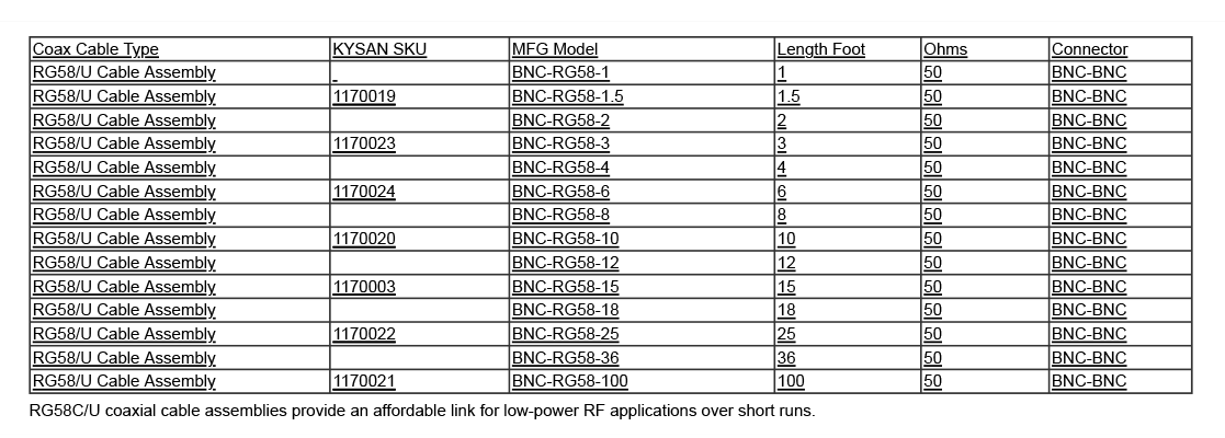 Applications: Common uses for RG58 coax include Thin Ethernet, mobile and base antenna installations, amateur radi