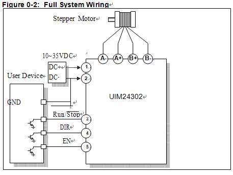 UIM24302 is capable to provide 0-2A adjustable phase current. Their mixed-decay current control reduces the back-EMF effect under high motor speed and improves the performance. Except that UIM24302 takes 10-35VDC input. Enclosure is made of die-cast aluminum which provides a rugged durable protection and improves the heat dissipation.