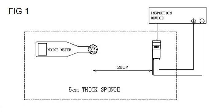 Put a sponge of 5cm under the pump and distance to noise meter from 30cm.and while pressurizing from 0 to 200mmHg to test noise value at 6.0V voltage(FIG1)