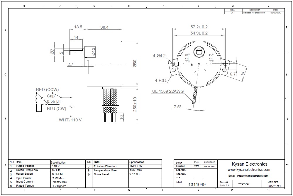 Decsription: 50KTYZ-110V60RPM