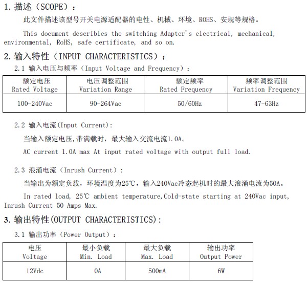 Decsription: AD2-12V0.5A-C