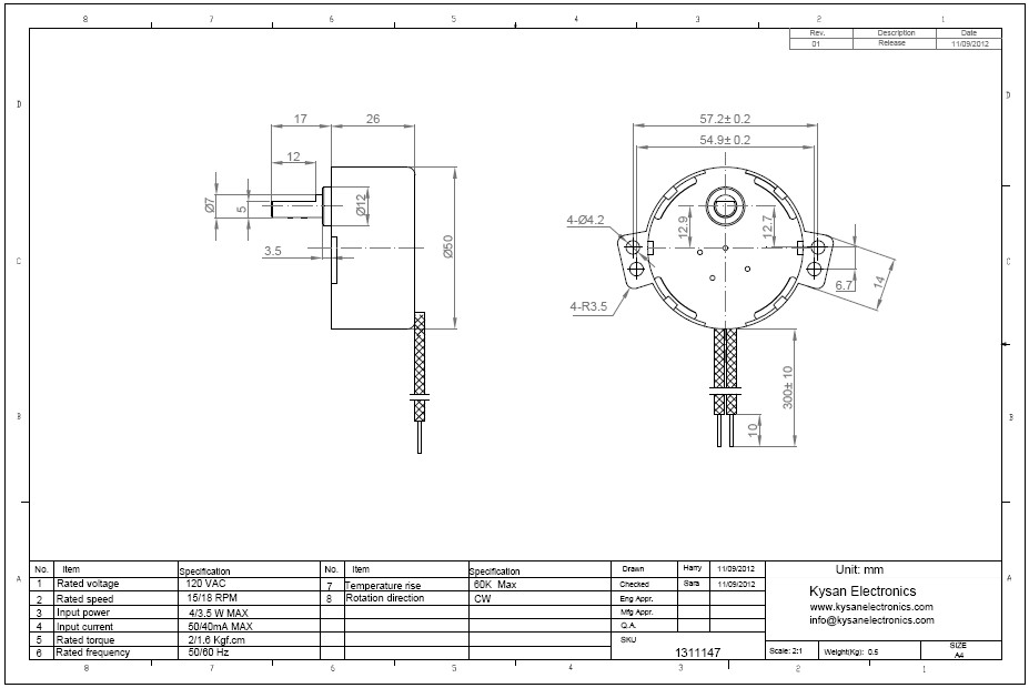 Decsription: 50TYZ-120V15RPM