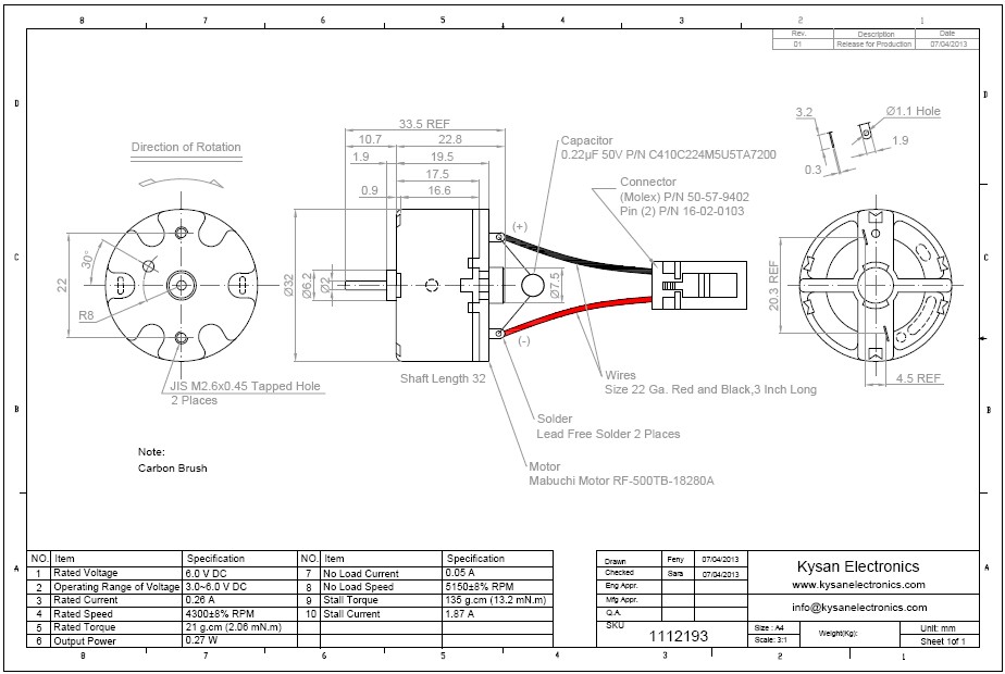 Black wire connect to(+) terminal and red wire connect to (-) terminal. 8% speed tolerance only.