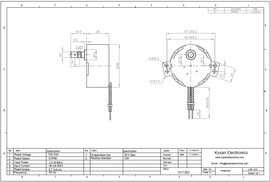 Decsription: 50TYZ-120V6RPM-CW