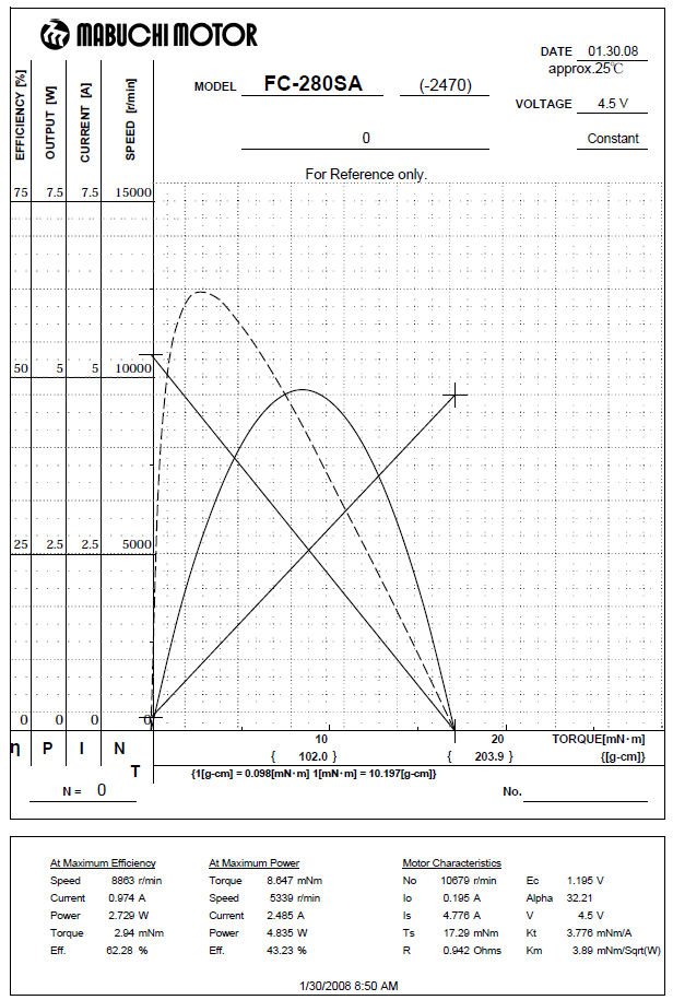 FC280SA-2470. No Load Speed: 10,000 rpm Voltage: 3 to 4.5v DC. Double shafted. 2 mounting holes on spline. 11.5mm c-c. Shaft dimensions: 2.0mm (0.0787") shaft, A: 10.6mm (0.417") long one side, B: 5.5mm (0.218") long spline side. Body measures: