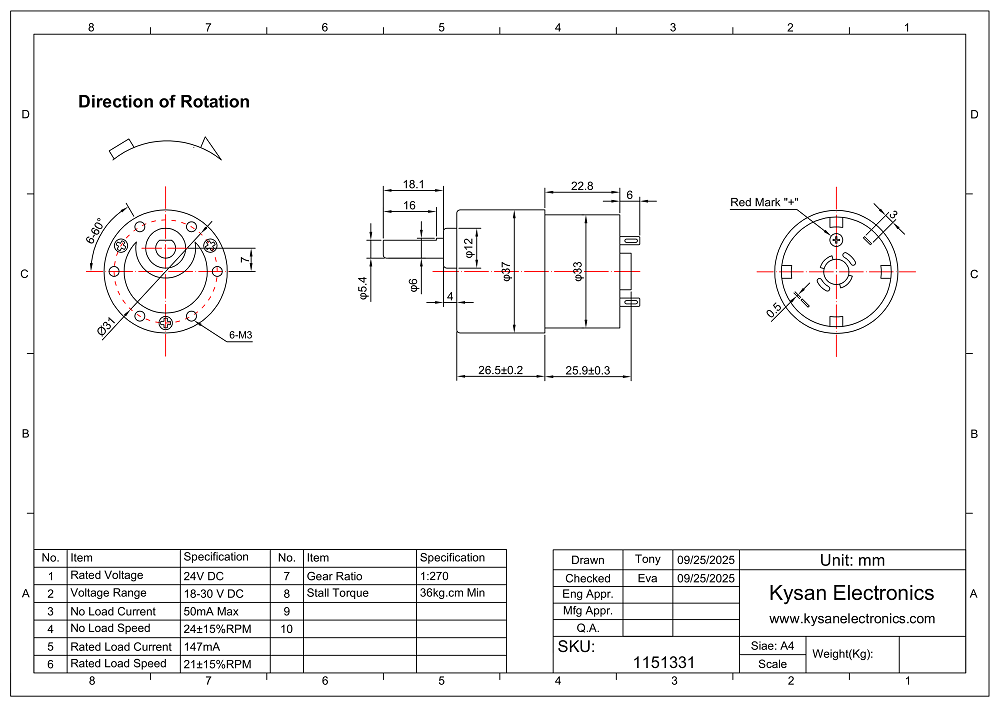 Decsription: B38-24V24RPM-18D-270